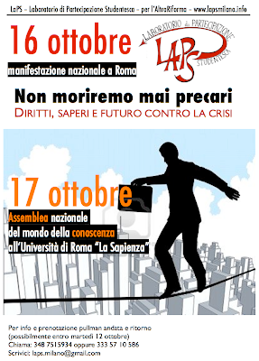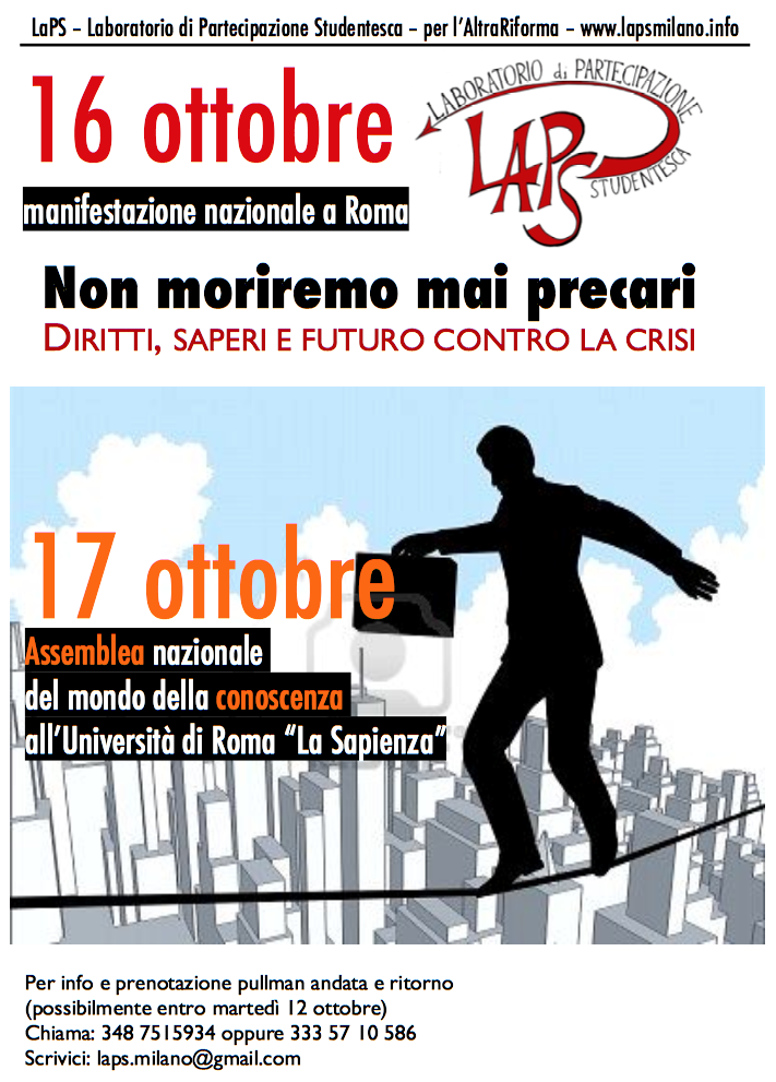 16 ottobre – Diritti Saperi Futuro – No alla precarietà