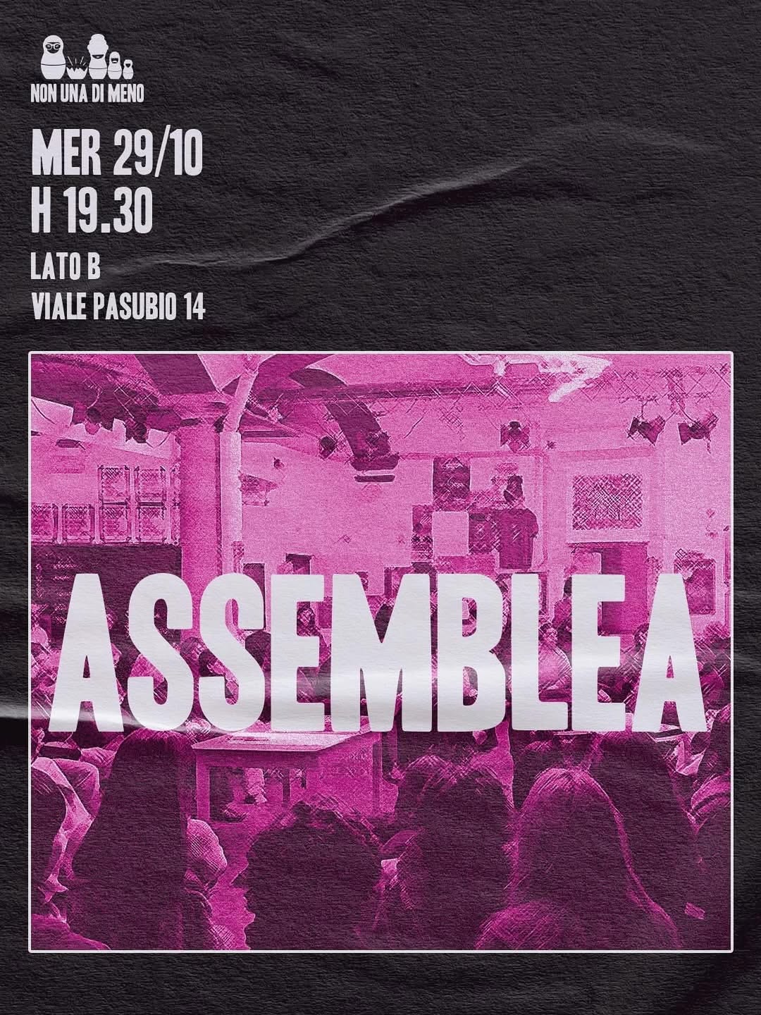 Per questo ci riuniamo in assemblea mercoledì 29 ottobre alle 19.30 a lato b.